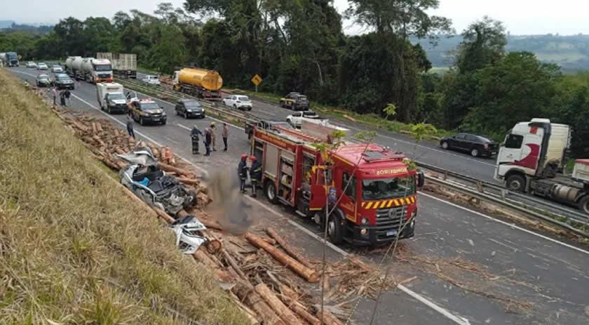 Quatro pessoas morreram depois da carga de madeira de um caminhão cair e atingir um carro na BR-376 em Tibagi, nos Campos Gerais do Paraná, na manhã desta segunda-feira (12), de acordo com a Polícia Rodoviária Federal (PRF).