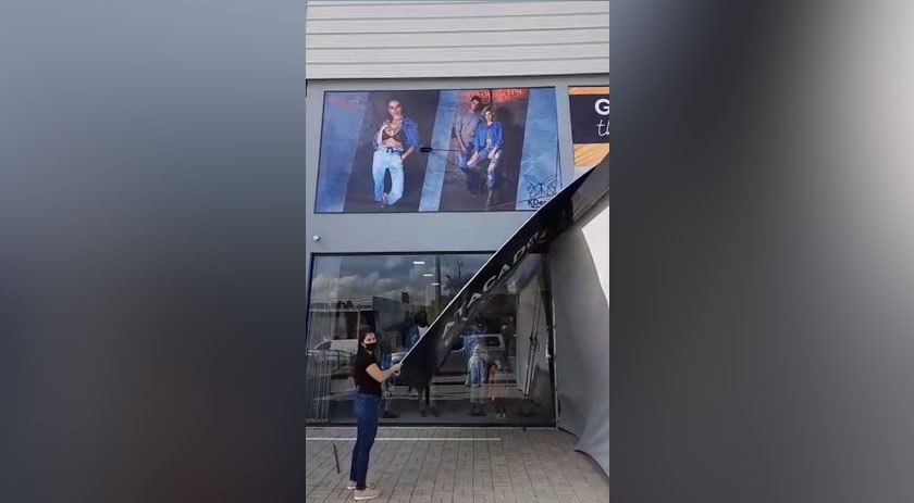 A fachada da loja Rei do Jeans, localizada na Willy Barth, em São Miguel do Oeste caiu com a força dos ventos registrados na tarde desta sexta-feira (28), em São Miguel do Oeste e região.