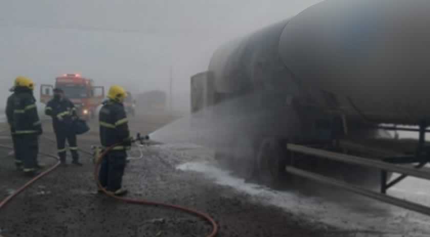 Um caminhão, carregado com oxigênio líquido, foi atingido por um incêndio na última segunda-feira (14), na BR-158, em Cunha Porã.