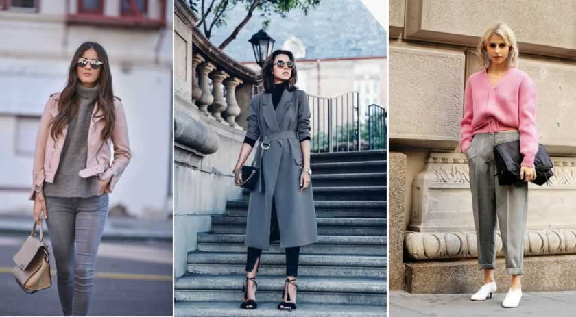 Essa cor é a mistura de branco e preto, resultando no cinza que vem para transmitir a união dos opostos, indefinido, névoa, fumaça e neblina. As roupas nessa cor sugerem a descrição, reserva e mistério, uma das cores preferidas daqueles que não querem ser muito notados. Vou mostrar alguns looks de inspiração com essa cor que também representa sofisticação e elegância, se misturamos o cinza com outras cores chegamos no auge da beleza dessa cor sem dúvidas, sugestões de cores para mesclar... rosa seja ele suave ou pink, com amarelo, branco, verde petróleo, azul escuro, vermelho e o preto até o total cinza em degradê, ou em um look monocromático.