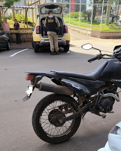 Após acompanhamento tático, o condutor foi abordado próximo ao calçadão. Verificou-se que ele não possuía CNH e a moto era uma “bruxa”, veículo com documentação irregular e dívidas superiores ao seu valor de mercado, sendo registrada em nome de terceiros.