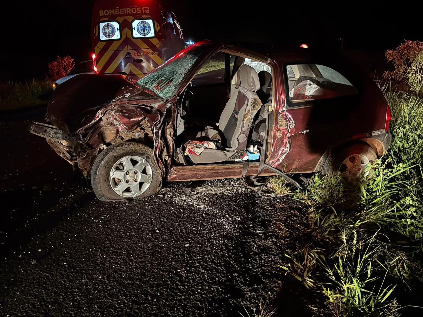 Acidente aconteceu na noite de sábado, na PR-562, e mobilizou equipes do Corpo de Bombeiros e do Samu