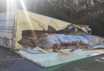 Entre os oito veículos envolvidos, haviam caminhões de carga que tiveram perda nos materiais, como pode ser observado nas fotos do acidente.