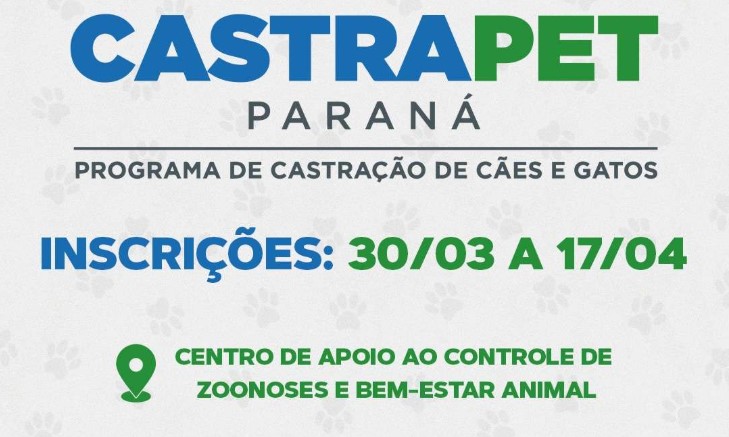 O município de Francisco Beltrão participa de mais uma edição do programa Castrapet Paraná, iniciativa do Governo do Estado, por meio do Instituto Água e Terra (IAT), em parceria com a Prefeitura. A ação visa ampliar o controle populacional de cães e gatos, com foco em famílias de baixa renda.
