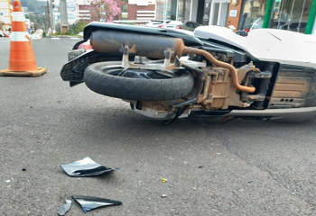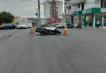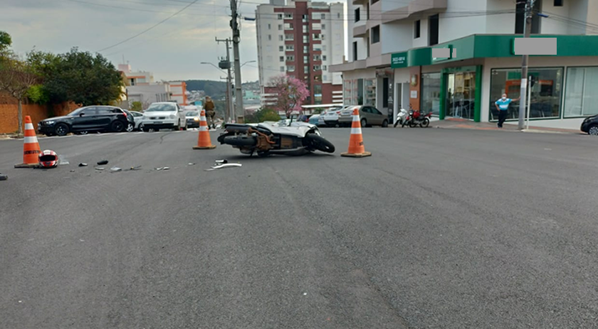 Na tarde desta segunda-feira (09), um motociclista ficou ferido ao colidir contra uma máquina que realiza a pintura de sinalização viária, na Avenida Getúlio Vargas, centro de São Miguel do Oeste.