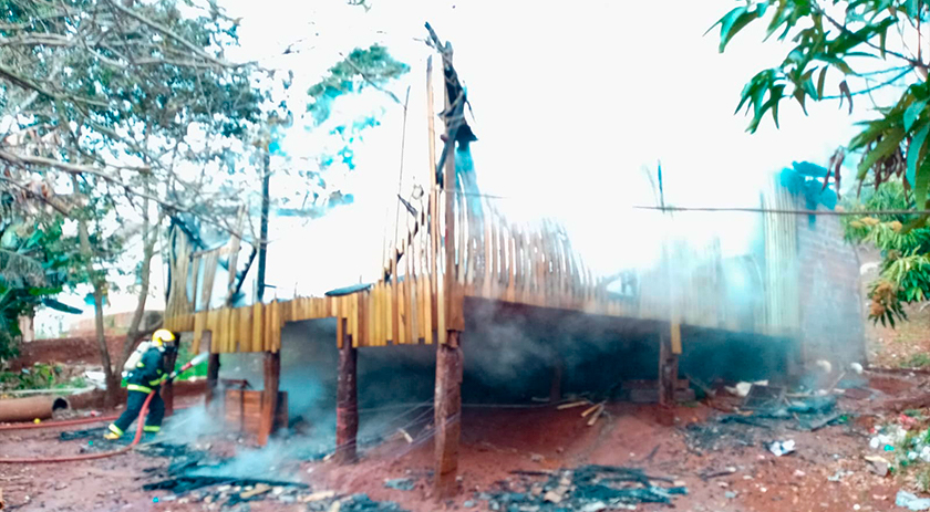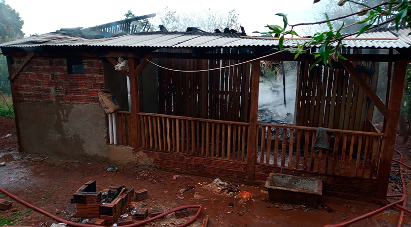 Um incêndio a residência mobilizou a equipe do Corpo de Bombeiros na manhã deste sábado, (14), por volta das 8h, na linha Aparecida interior do município de Iporã do Oeste.