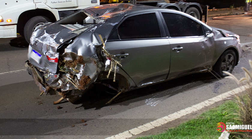 O Veículo KIA/Cerato placas Mercosul, ficou totalmente destruído na noite desta sexta-feira (27), após perder o controle em uma curva bater contra uma cerca e capotar praticamente em cima de uma residência na Willy Barth em São Miguel do Oeste próximo a Zette Materiais de Construção.