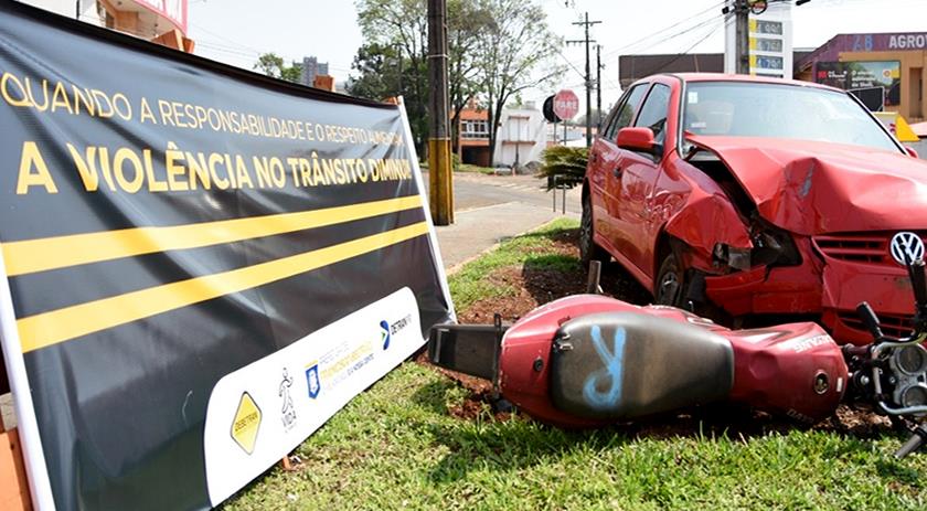 Veículos envolvidos em sinistros de trânsito foram colocados no cruzamento das avenidas União da Vitória, Luiz Antônio Faedo e Antônio de Paiva Cantelmo. A meta com esta iniciativa é sensibilizar e conscientizar as pessoas que passam pelo local. A União da Vitória tem fluxo de mais de 10 mil veículos ao dia.