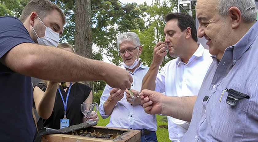 O governador Carlos Massa Ratinho Junior lançou nesta quinta-feira (20) um programa para a instalação de colmeias de abelhas nativas sem ferrão nos parques urbanos do Estado. A ação faz parte do Poliniza Paraná, desenvolvido pela Secretaria do Desenvolvimento Sustentável e do Turismo (Sedest), que tem como objetivo espalhar para 398 municípios os Jardins de Mel idealizados pela Prefeitura de Curitiba, replicando o projeto que promove a criação de abelhas nativas sem ferrão, responsáveis pela polinização de cerca de 90% das plantas brasileiras.