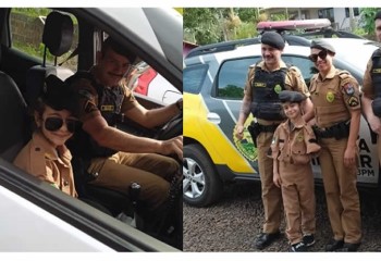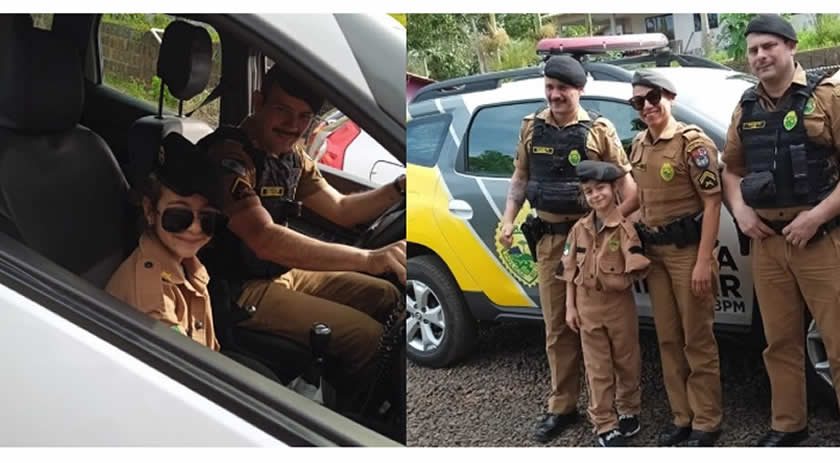 A equipe Alfa do 21° BPM esteve na festa dela neste domingo (04), em Francisco Beltrão. Amanda ficou muito emocionada com a chega da equipe ao local, ela recebeu uma farda e boina da PM para tirar fotos e realizou um patrulhamento com a viatura. Ela tem o sonho de se tornar policial quando crescer.